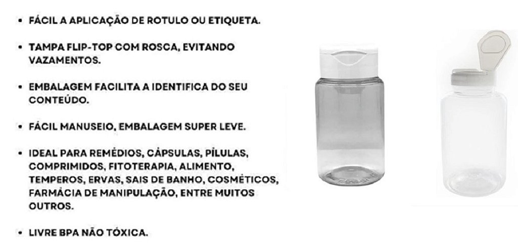 Com visual clean e moderno, ele é ideal para cosméticos, produtos naturais, higiene pessoal, entre outros. A tampa flip top branca oferece praticidade no uso, garantindo um fechamento seguro e fácil, sem vazamentos.